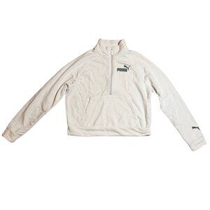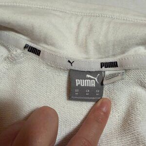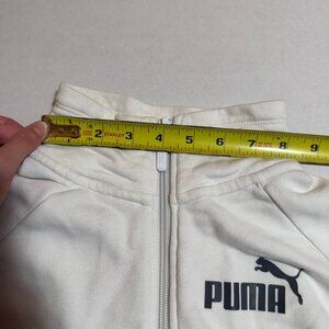 PUMA Sweatshirt Womens Medium White Gray Spell Out Logo Stand Collar Long Sleeve