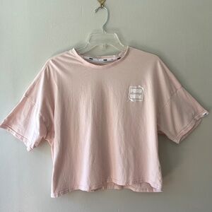 PUMA Sz XL Peach Classic Tee Shirt Cropped Top Loose Fit Stretch
