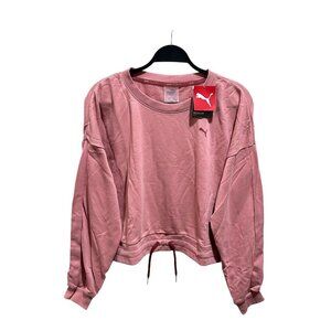 PUMA Training Sweatshirt Size L Rosette Pink French Terry Pullover Tie Waist NWT