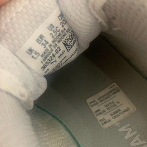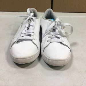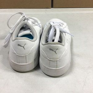 PUMA UNISEX CHILD SMASH V2 LEATHER SNEAKERS WHITE SIZE 2.5C IN GOOD CONDITION.