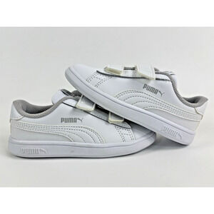 The product is a pair of PUMA unisex toddler shoes in white color, size 10C. These shoes are designed for young children and are suitable for both boys and girls. The PUMA brand is known for quality athletic footwear, making these shoes a stylish and comfortable choice for active toddlers. The white color adds a clean and versatile touch to any outfit, making them a great addition to any toddler's wardrobe.
