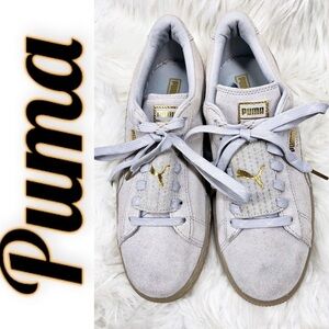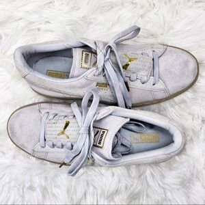 PUMA Vikky Suede Classic Low Top Sneakers White & Metallic Gold, Size 7