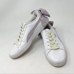 PUMA Women’s BASKET SUEDE BOW Sneakers White Patent Winsome Orchid Lavender