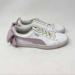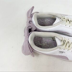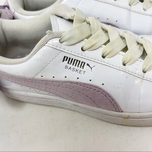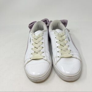 PUMA Women’s BASKET SUEDE BOW Sneakers White Patent Winsome Orchid Lavender. Size 6. Good pre-owned condition. Gentle signs of wear. See photos. All measurements are approximate.