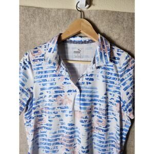 PUMA Women's Blue Peach Active Athletic Golf Top Polo SZ M