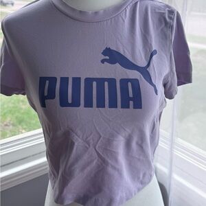 Stylish lavender crop top with Puma logo. Perfect for casual wear.
