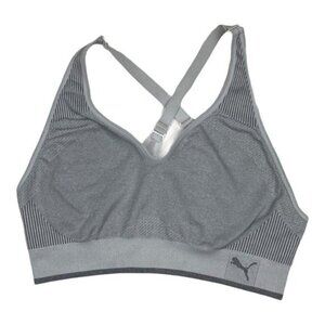 PUMA Women's Grey Seamless Sports Bra Adjustable Straps Moisture Wicking US L