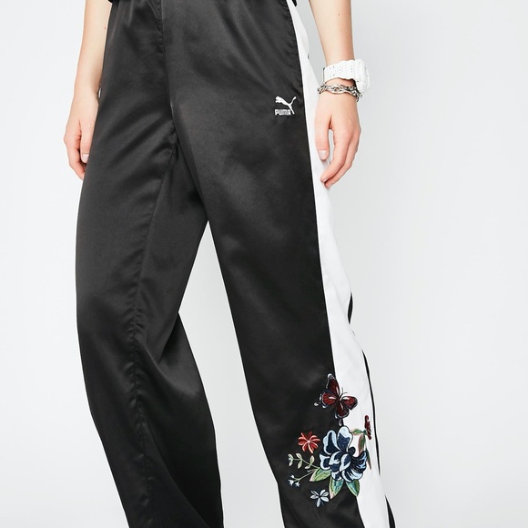 PUMA Premium Archive T7 Pants cuz you’re ready to go all in, bb! Put in work with these wide leg track pants that have a floral detail on the front, a contrast panel on the sides and an elastic waistband.