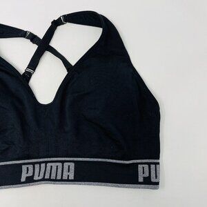 PUMA Womens Size XL Spell Out Low Impact Lightly Padded Sports Bras in Black 534