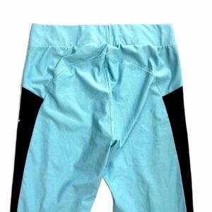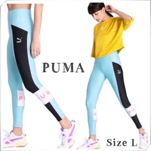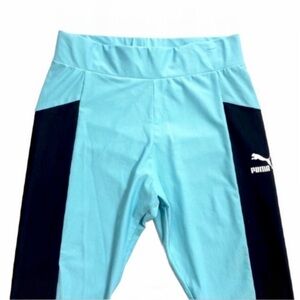 PUMA Xtg Spell Out Logo Stripe High Rise Running Leggings Tights Light Blue Sz L
