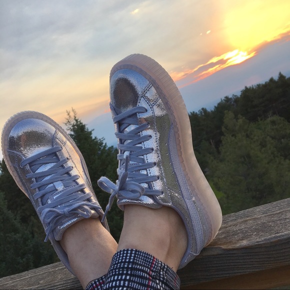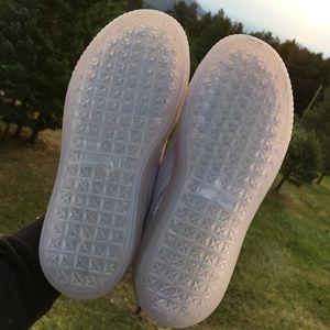 NWOT!! BRAND NEW!! NEVER WORN!! PERFECT CONDITION!! Classic 'Trace' sneaker with a platform sole, made of rubber with a sorta transparency to them. Definitely eye catching! The upper is made of leather in this kind of frosted periwinkle blue. It's so different. Certified fly! Definitely a statement shoe. These babies will take your outfit to the next level and set it off! Women's size 7. True to size. These are so tight I almost wanna keep em for myself. Haha