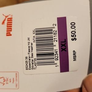 2XL puma zip-up hoodie/jacket , never worn , polyester/cotton , comes from a smoke-free and godly clean home !!!