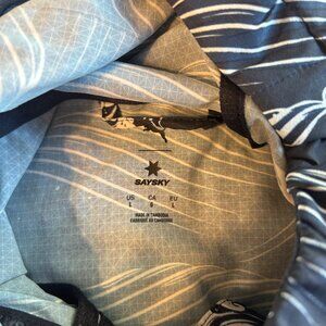 Color: New Navy. Collab jacket. Smoke free, dog friendly home. Small snag at the front; see picture; not very noticeable. From website: Made with 100% recycled material excluding trims & decorations; ULTRAWEAVE: Ultra-light, engineered fabric with a structured, 4-way stretch that reduces weight and friction. Built for athletes looking to increase speed and strength; dryCELL: Performance technology designed to wick moisture from the body and keep you free of sweat during exercise;