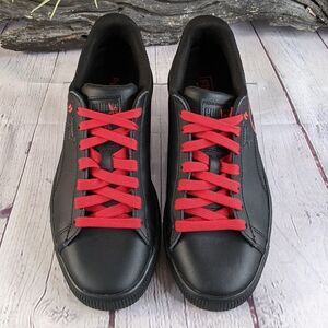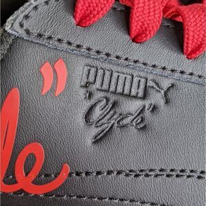 This classic 1970’s sneaker, is re-born on the feet of Detroit Don. Featuring Walt “Clyde” Frazier’s supersized signature along the leather upper for a clear and standout look. The all-Black leather upper is paired with an all-Black gum sole and Black lacing, while the Red “Clyde” pops.