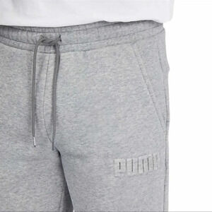 PUMA Men's Fleece Jogger Sweatpants featuring Dual Side Pockets, Adjustable Drawstring, Brushed Fleece Fabric, PUMA wordmark embossed logo on left leg and Ribbed ankle cuffs. Made of 66% Cotton | 34% Polyester. Inseam (in): 31. These are the perfect sweatpants for any man.