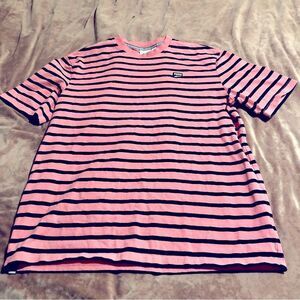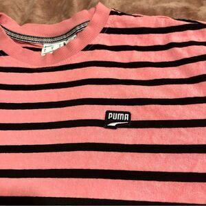 PUMA SPECIAL EDITION MENS PINK AND BLACK STRIPED FOREVER BETTER SHIRT. LIKE NEW.