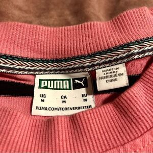PUMA SPECIAL EDITION MENS PINK AND BLACK STRIPED FOREVER BETTER SHIRT. LIKE NEW. SIZE MEDIUM