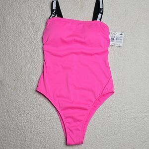1163 NWT PUMA Women Swimsuit Pink Stretch Chlorine Resistant Summer One Piece Sz Med