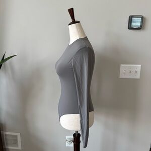 Elevate your wardrobe with this sleek gray long sleeve bodysuit. Perfect for any occasion, it offers a comfortable and stylish fit.