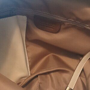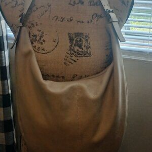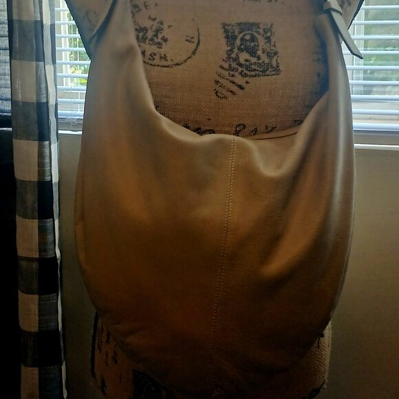 Nice PUNTOTRES cream leather hobo bag. GOOD condition! Features wood and studded design on front of bag. The bag is 20" in length and 15" in width.
