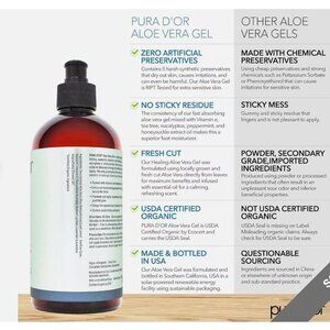 PURA D'OR 16 Oz ORGANIC Aloe Vera Gel - Lavender - All Natural - ZERO Artificial