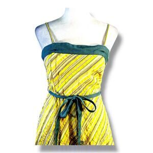 PURA VIDA Vintage Yellow & Blue Sunflower Embellished Slip Full Skirt Dress SZ 4