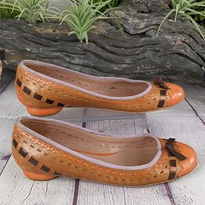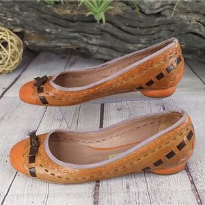 PURA LÓPEZ Woven Leather Ballet Flats with Bow Detail
