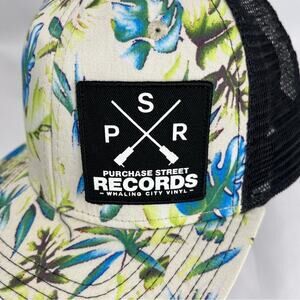 PURCHASE STREET RECORDS Logo Patch Hawaiian Print Mesh Baseball Hat Cap Black OS