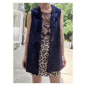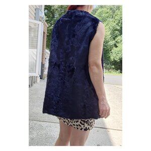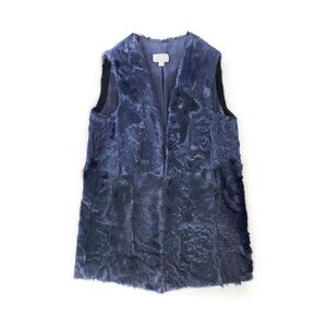 PURE COLLECTION 100% Goat Skin Real Fur Vest Blue