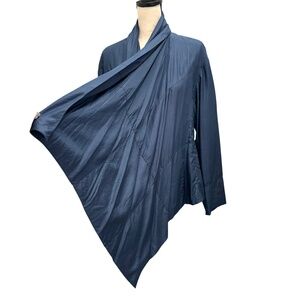 PURE DKNY BLUE SILK WATERFALL FRONT OPEN JACKET COAT