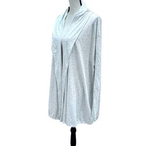 PURE DKNY HEATHER OATMEAL/GRAY OPEN FRONT DRAWSTRING HEM COTTON CARDIGAN