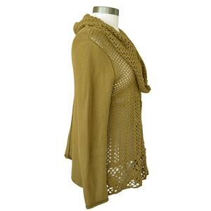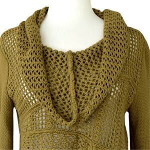 PURE Handknit Open Knit Cowl Neck Sweater Small/Medium Chunky Golden Brown Boho
