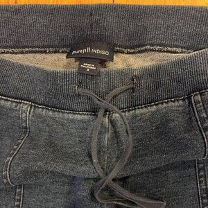 Part of the Pure Jill Collection, made from cotton/spandex in indigo blue with two front deep pockets, stretch drawstring waistband and stretch cuffs. Women's size S approx measurements: inseam 27," waist 16." Pre-owned in good condition.