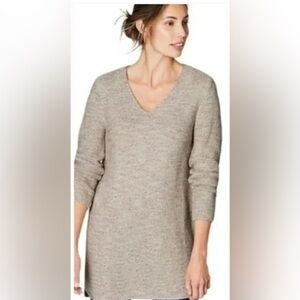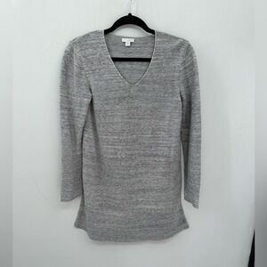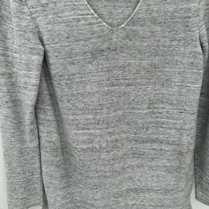 PURE JILL Linen blend V neck woman quiet luxury soft classic grey tunic. SMALL