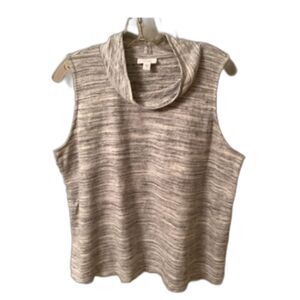 PURE JILL SIZE MEDIUM BLUE HEATHER GRAY MOCK COWL NECK SLEEVELESS KNIT TOP
