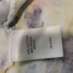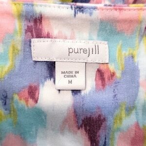 Pure Jill tunic style long sleeve lightweight top with two front pockets in pretty spring/summer colors- pink, blue, lilac, gold and white. Fabric is cotton/modal rayon blend, very soft and stretchy. In excellent gently pre-loved condition with no flaws.
