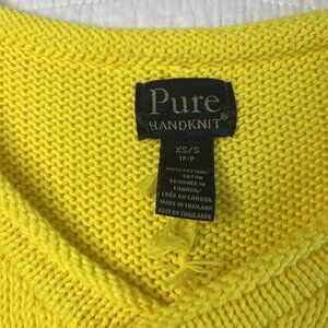 PURE Knits size small yellow button v-neck sweater. Sweater has an unusual pattern of different buttons down the front, buttons on the back as well as button detail at the wrist.