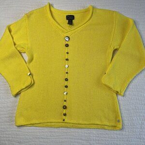 PURE KNITS Pullover Sweater Womens Size XS-S Yellow Buttons V Neck Long Sleeve