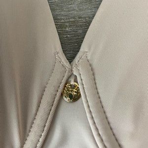 - Low platform and sweetheart neckline accentuates the cleavage. Center is adorned with signature Natori gold crest.