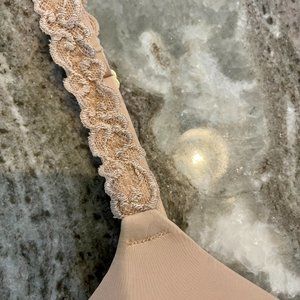 - 2-ply backs are smoothing and comfortable. Signature Pure Luxe lace trim at the front straps paired with Natori logo straps at the back.