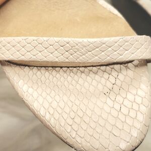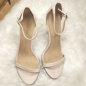 cream/bone color snakeskin genuine embossed leather. Sandal heels.