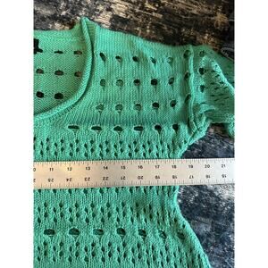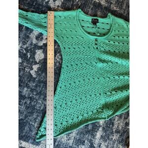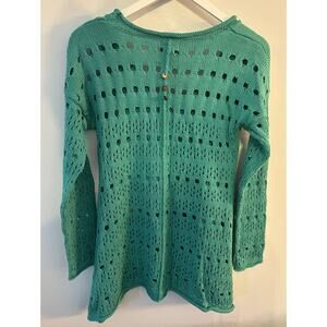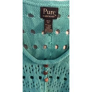 PURE handknit Green open open knit sweater XS/S Wood Buttons Asymmetrical Hem