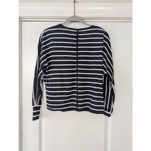 PURE Collection Dolman Sweater women's size 4 navy blue striped cotton cashmere