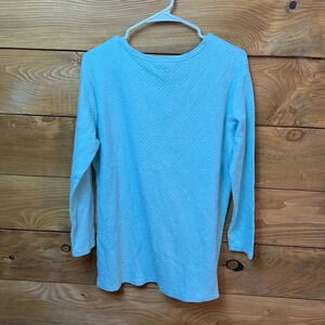 WOMENS PUREJILL SIZE PETITE MEDIUM LONG SLEEVE TOP 1 POCKET AQUA