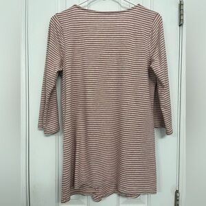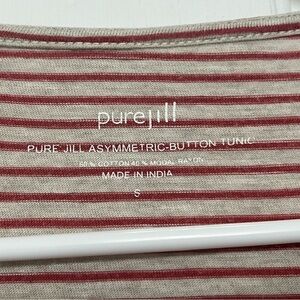 PureJill asymmetric-button tunic 3/4 sleeve. Cotton Modal blend. Size Small. Good condition, one small hole near inside sleeve cuff. Approximate measurements 20” pit to pit, 28” length, 18” sleeve.