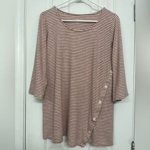 PUREJILL asymmetric-button tunic 3/4 sleeve. Cotton Modal blend. Size Small.