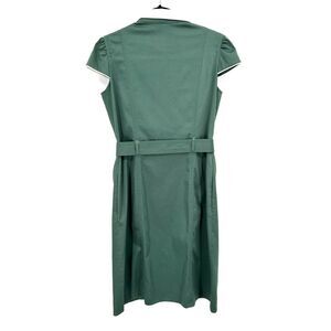 PURIFICACION GARCIA Green White Full Zip Up Cap Sleeve Belted Midi Dress Small