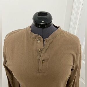 Classic brown button down shirt. Ideal for casual wear. Features a comfortable fit.