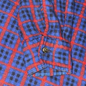 PURITAN flannel button down long sleeve one chest pocket buttons at cuffs, blue red black super soft and cozy, has extra buttons attached.
