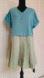 PurPearl teal colored jersey/t-shirt top portion paired with a flowing light green skirt dress and short sleeves.